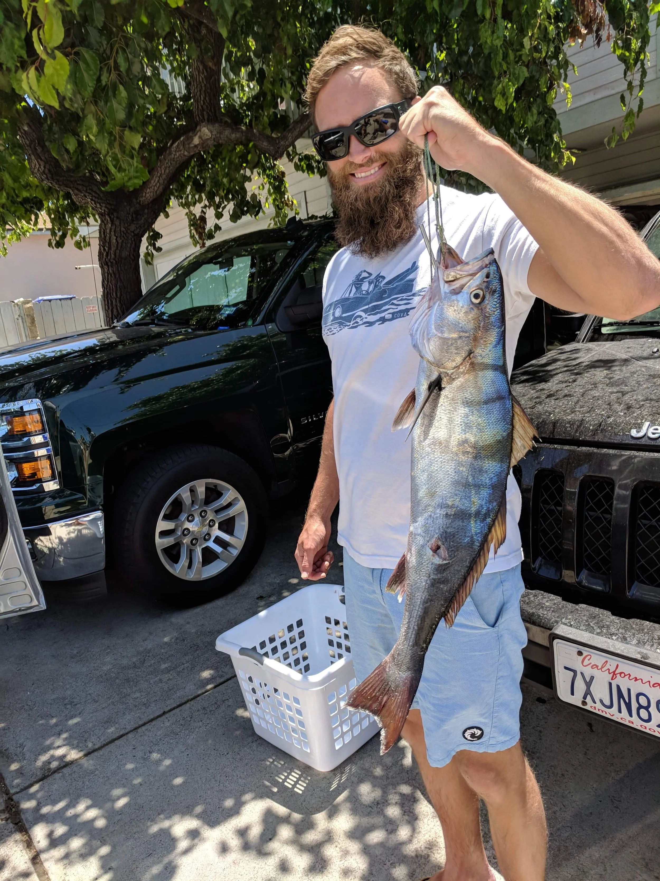 Not the best shot I've ever had, but it held. The fish was just legal so nothing to write home about... but I hadn't shot a fish in years and to land one of these creatures had me through the roof. I told the lady that I was ready to stay out or head in; it didn't matter because I was so stoked (and we had a wedding to drive up to in LA). She wanted to stay out.